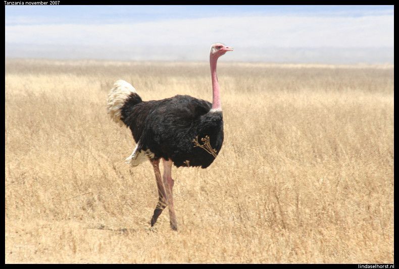 Vanmorgen om 8.00u zaten we weer in de jeep, op naar de laatste game drive in de Serengeti. De eerste tijd scheurden we overal langs totdat we een riviertje over moesten steken. Daar deden we drie keer over en aan de overkant van het meer zagen we links 4 leeuwinnen en rechts een heleboel wildebeesten. Helaas was er van beide kanten geen beweging en tuften wij verder. Nu zagen we nog meer wildebeesten bij elkaar en allemaal op weg naar de migratie, echt een overweldigend gezicht!! We hebben een tijdje tussen de duizenden wildebeesten rondgereden toen we weer om moesten keren naar het riviertje. Intussen waren de wildebeesten overgestoken en de leeuwinnen niet meer te zien. Wel zagen we een hoop gieren en een eenzame hyena die flink z’n best deed om alle gieren weg ta jagen, wat hem niet lukte in z’n eentje, het waren er teveel. Bij zo’n grote rots zagen we 2 jeeps staan, dat beloofde goed nieuws. En jawel, wat een geluk, 1 leeuw en 4 leeuwinnen waarvan er 1 zelfs zwanger was! Ze lagen (wederom) rustig te liggen, af en toe ging er een pootje of een kop omhoog maar dat was dan ook wel waar het bij bleef. Toen door naar de uitgang van het NP welke meteen over ging in het Ngorongoro NP. Bij de ingang konden we weer van een opperbest toilet genieten. Maar gelukkig ook hier een prachtig uitzicht over de vlaktes. Eenmaal terug bij de jeeps bleek er van de derde jeep de ventilator te zijn gesneuveld en moesten we die jeep achterlaten, de passagiers en de tassen werden over onze 2 jeeps. Na een tijdje door ‘skelettenland’ te hebben gereden, stopten we bij 1 duin ergens in de middle of nowhere. Weer pech, maar nu met de jeep van Julio, een lekke band. We zijn het duin opgeklommen, gezellig gekletst en een paar leuke foto’s gemaakt. Toen weer op weg en nog geen 20minuten later, weer de jeeps aan de kant, weer een lekke band! Dus weer uit de jeeps, kletsen in de zon, nieuwe band eronder, maar deze was ook al zacht, nou ja, op hoop van zegen. Zodra we hier uitstapten kwam er een Masai vrouw op ons af met 2 ezels, ze vroeg geld in ruil voor foto’s. Het land waar we ons nu bevinden is de ‘gorge’ waar de eerste mens gevonden (homo Sapiens) is en wordt alleen bewoond door de Masai, het is te dor en te droog om goed bewoond te kunnen worden. We reden na het verwisselen van de band door naar een uitkijkpunt over de vallei en hadden ook hier weer een schitterend uitzicht en een hoop lol met de amerikanen! De chauffeurs waren weer met de auto’s bezig en na een uurtje zat alles weer vast en konden we weer op pad. Nu gingen we door het lege landschap op weg naar een Masai-dorp. We werden verwelkomt met dans en zang en gingen in groepjes van 3 een hutje van binnen bekijken. Interessant hoor, we kregen uitleg over het leven van de Masai. Daarna nog een rondleiding door het dorpje en langs de plaatselijke school waar ze de ‘Jambo-song’ voor ons zongen. Toen ik begon te tellen in het engels, maakten zij het af, echt goed! Inmiddels had ik een klein ventje aan de hand wat me niet meer los liet, hoewel z’n moeder ons overal volgde. Nog steeds met het jochie aan de hand liepen we terug naar het dorp, terug naar de jeep en de volgende rit vol stof. Als de moeder het jochie niet had gepakt, was ie zo met ons mee gelopen. 20 minuten later kwamen we de chauffeur tegen die we eerder deze dag hadden achtergelaten met een kapotte ventilator. Hij stond nu weer stil met de nieuwe ventilator in zijn handen, dus wij weer stoppen, de chauffeurs haalden alle tools weer tevoorschijn en gingen weer al schreeuwend tegen elkaar aan de bak om de wagen te fiksen. Na 40minuten konden we weer op weg, want hij deed het weer. Hij wilde nog geen passagiers meenemen, die mochten in onze jeeps blijven. Nou, toen was de jeep van Julio weer aan de beurt, er was een slangetje los geschoten. We gaan lekker vandaag! Nieuw slangetje erin, weer wat geklus en gedoe en we konden weer op pad. Alleen onze jeep rijdt nog zonder problemen, als je het raam wat er steeds uitvalt niet mee rekent dan, haha. We vervolgden een stoffige weg en Mudi gaf vol gas omhoog en toen werd ik wel wat ziek, maar gelukkig was de afleiding van de prachtige uitzichten daar. In het hotel een koude handdoek, een drankje en de sleutel van een immens grote kamer met glazen serre met uitzicht op… een berg gras! Haha, geweldig! Lekker wat gedronken in de bar, koud gedoucht, alle apparatuur weer opgeladen en richting het diner. Goed buffet en toen weer naar de bar met de Amerikaanse jongens. We hebben veel gekletst en gelachen om ons belachelijke engels en een potje gekaart. Toen de bar dichtging hebben we op hun kamer ze leren meppen, haha! Toen nog een spelletje bullshit gespeeld waarbij ik wonderbaarlijk won zonder precies te weten hoe ik dat gedaan had, was het tijd om te slapen. Morgen naar de krater!