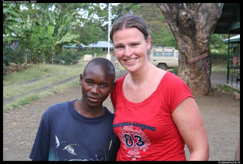 Vanmorgen om 8.00u zaten we weer in de jeep, op naar de laatste game drive in de Serengeti. De eerste tijd scheurden we overal langs totdat we een riviertje over moesten steken. Daar deden we drie keer over en aan de overkant van het meer zagen we links 4 leeuwinnen en rechts een heleboel wildebeesten. Helaas was er van beide kanten geen beweging en tuften wij verder. Nu zagen we nog meer wildebeesten bij elkaar en allemaal op weg naar de migratie, echt een overweldigend gezicht!! We hebben een tijdje tussen de duizenden wildebeesten rondgereden toen we weer om moesten keren naar het riviertje. Intussen waren de wildebeesten overgestoken en de leeuwinnen niet meer te zien. Wel zagen we een hoop gieren en een eenzame hyena die flink z’n best deed om alle gieren weg ta jagen, wat hem niet lukte in z’n eentje, het waren er teveel. Bij zo’n grote rots zagen we 2 jeeps staan, dat beloofde goed nieuws. En jawel, wat een geluk, 1 leeuw en 4 leeuwinnen waarvan er 1 zelfs zwanger was! Ze lagen (wederom) rustig te liggen, af en toe ging er een pootje of een kop omhoog maar dat was dan ook wel waar het bij bleef. Toen door naar de uitgang van het NP welke meteen over ging in het Ngorongoro NP. Bij de ingang konden we weer van een opperbest toilet genieten. Maar gelukkig ook hier een prachtig uitzicht over de vlaktes. Eenmaal terug bij de jeeps bleek er van de derde jeep de ventilator te zijn gesneuveld en moesten we die jeep achterlaten, de passagiers en de tassen werden over onze 2 jeeps. Na een tijdje door ‘skelettenland’ te hebben gereden, stopten we bij 1 duin ergens in de middle of nowhere. Weer pech, maar nu met de jeep van Julio, een lekke band. We zijn het duin opgeklommen, gezellig gekletst en een paar leuke foto’s gemaakt. Toen weer op weg en nog geen 20minuten later, weer de jeeps aan de kant, weer een lekke band! Dus weer uit de jeeps, kletsen in de zon, nieuwe band eronder, maar deze was ook al zacht, nou ja, op hoop van zegen. Zodra we hier uitstapten kwam er een Masai vrouw op ons af met 2 ezels, ze vroeg geld in ruil voor foto’s. Het land waar we ons nu bevinden is de ‘gorge’ waar de eerste mens gevonden (homo Sapiens) is en wordt alleen bewoond door de Masai, het is te dor en te droog om goed bewoond te kunnen worden. We reden na het verwisselen van de band door naar een uitkijkpunt over de vallei en hadden ook hier weer een schitterend uitzicht en een hoop lol met de amerikanen! De chauffeurs waren weer met de auto’s bezig en na een uurtje zat alles weer vast en konden we weer op pad. Nu gingen we door het lege landschap op weg naar een Masai-dorp. We werden verwelkomt met dans en zang en gingen in groepjes van 3 een hutje van binnen bekijken. Interessant hoor, we kregen uitleg over het leven van de Masai. Daarna nog een rondleiding door het dorpje en langs de plaatselijke school waar ze de ‘Jambo-song’ voor ons zongen. Toen ik begon te tellen in het engels, maakten zij het af, echt goed! Inmiddels had ik een klein ventje aan de hand wat me niet meer los liet, hoewel z’n moeder ons overal volgde. Nog steeds met het jochie aan de hand liepen we terug naar het dorp, terug naar de jeep en de volgende rit vol stof. Als de moeder het jochie niet had gepakt, was ie zo met ons mee gelopen. 20 minuten later kwamen we de chauffeur tegen die we eerder deze dag hadden achtergelaten met een kapotte ventilator. Hij stond nu weer stil met de nieuwe ventilator in zijn handen, dus wij weer stoppen, de chauffeurs haalden alle tools weer tevoorschijn en gingen weer al schreeuwend tegen elkaar aan de bak om de wagen te fiksen. Na 40minuten konden we weer op weg, want hij deed het weer. Hij wilde nog geen passagiers meenemen, die mochten in onze jeeps blijven. Nou, toen was de jeep van Julio weer aan de beurt, er was een slangetje los geschoten. We gaan lekker vandaag! Nieuw slangetje erin, weer wat geklus en gedoe en we konden weer op pad. Alleen onze jeep rijdt nog zonder problemen, als je het raam wat er steeds uitvalt niet mee rekent dan, haha. We vervolgden een stoffige weg en Mudi gaf vol gas omhoog en toen werd ik wel wat ziek, maar gelukkig was de afleiding van de prachtige uitzichten daar. In het hotel een koude handdoek, een drankje en de sleutel van een immens grote kamer met glazen serre met uitzicht op… een berg gras! Haha, geweldig! Lekker wat gedronken in de bar, koud gedoucht, alle apparatuur weer opgeladen en richting het diner. Goed buffet en toen weer naar de bar met de Amerikaanse jongens. We hebben veel gekletst en gelachen om ons belachelijke engels en een potje gekaart. Toen de bar dichtging hebben we op hun kamer ze leren meppen, haha! Toen nog een spelletje bullshit gespeeld waarbij ik wonderbaarlijk won zonder precies te weten hoe ik dat gedaan had, was het tijd om te slapen. Morgen naar de krater!