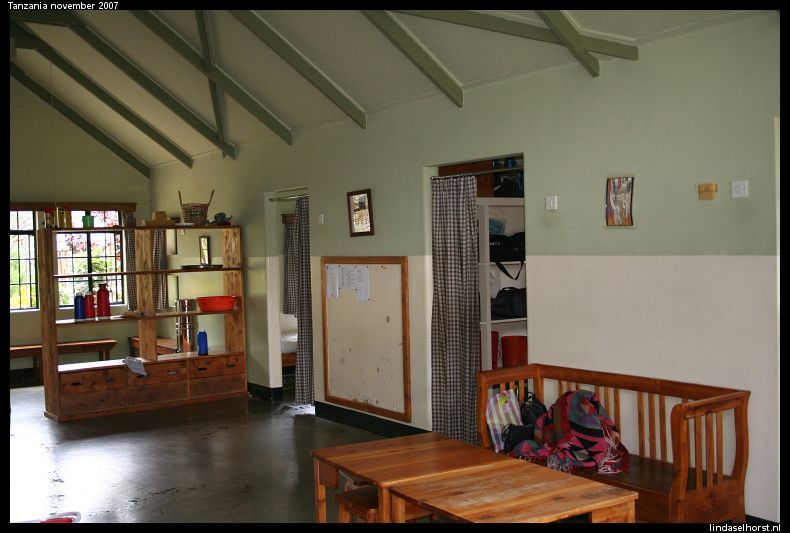 Op tijd ontbeten en stipt om 8.00u reden we richting Lake Manyara. Bij de ingang van het park werden we opgewacht door tientallen baboons. Eenmaal in het park werden we omringd door wel 1000 kleuren groen en vele vele baboons! Wat een ontzettend mooi en vooral groen park, het lijkt het tropische regenwoud van Ecuador wel. We zagen 2 mannetjes olifanten van een behoorlijke afstand en wederom baboons, vele soorten vogels, warthogs en impala’s. Na zo’n 2,5uur in het park gereden te hebben, reden we richting een picnic-place voor een sanitaire stop, maar vlak ervoor zagen we het schuwe luipaard hoog in een boom zitten. Wow, wat gaaf! Hij ging nog een paar keer verzitten en leek zich niet echt aan ons te storen, nu stonden we ook echt wel een eindje weg maar toch. Bij de stop een korte plaspauze en weer door. We kwamen weer langs het luipaard en hij lag nog steeds relaxt om zich heen te kijken. We kwamen langs de hippo-pool waar we een hoop ogen en oren boven het water zagen uitsteken en dat tussen allerlei soorten vogels. Om 12.00u waren we weer terug voor de lunch en om 13.00u vertrokken we naar de Serengeti. Onderweg zijn we alle kanten opgestuiterd door het slechte wegdek, echt ongelofelijk. Maar we hebben mooie dingen gezien; impala’s, warthogs, struisvogels, zebra’s en toen we binnen de grenzen van het park waren, zagen we nog een aantal gieren genieten van een kill. Dat was een geinig gezicht, allemaal stonden ze te wachten tot de grote baas uitgegeten was en toen de baas met veel vertoon wegliep, stormde de groep en op af en vocht om de laatste stukjes vlies, huid en haar, geweldig!  Inmiddels waren wij al verder gereden tot we werden teruggeroepen door de andere jeep van Julio. Ze hadden een leeuw gespot. Wij als een gek weer terug en het enige wat we zagen waren een heleboel manen, meer liet hij niet zien, jammer! Het gras was te hoog en hij lag te ver weg voor een mooie blik op z’n kop en lijf. Maar even later zagen we twee leeuwinnen lekker luieren in de zon, bovenop een groot rotsblok. Verder nog vele impala’s en wildebeesten gezien en nog een paar warthogs. En nog een gevlekte hyena en een black backed jackal, maar we konden niet te lang blijven staan, want we moesten voor het donker binnen zijn. Toen kwamen we een grote groep olifanten tegen, wow! En zo dichtbij! Opeens zeker te dichtbij want er begon er een te tetteren en met zijn kop te schudden, wegwezen! Toen ze voorbij waren gingen we volgas naar de lodge, waar we prachtig uitkeken over de eindeloze vlaktes. Het buffet smaakte weer goed, helaas eten we nergens plaatslijk wild. De vergunning daarvoor schijnt erg duur te zijn, helaas. Na het eten werden Ri en ik uitgenodigd door Keith, Cory en Ryan om gezellig wat te drinken in de bar, we hebben leuk gekletst. Zij komen uit St Louis en verhuizen komende maand alledrie naar New York, kijk, daar hebben we wat aan ;-). Om 23.30u liggen we in bed en maken ons klaar voor een full day game drive van morgen in de Serengeti.