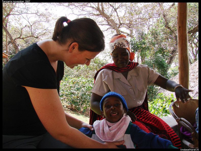 Vanmorgen om 8.00u zaten we weer in de jeep, op naar de laatste game drive in de Serengeti. De eerste tijd scheurden we overal langs totdat we een riviertje over moesten steken. Daar deden we drie keer over en aan de overkant van het meer zagen we links 4 leeuwinnen en rechts een heleboel wildebeesten. Helaas was er van beide kanten geen beweging en tuften wij verder. Nu zagen we nog meer wildebeesten bij elkaar en allemaal op weg naar de migratie, echt een overweldigend gezicht!! We hebben een tijdje tussen de duizenden wildebeesten rondgereden toen we weer om moesten keren naar het riviertje. Intussen waren de wildebeesten overgestoken en de leeuwinnen niet meer te zien. Wel zagen we een hoop gieren en een eenzame hyena die flink z’n best deed om alle gieren weg ta jagen, wat hem niet lukte in z’n eentje, het waren er teveel. Bij zo’n grote rots zagen we 2 jeeps staan, dat beloofde goed nieuws. En jawel, wat een geluk, 1 leeuw en 4 leeuwinnen waarvan er 1 zelfs zwanger was! Ze lagen (wederom) rustig te liggen, af en toe ging er een pootje of een kop omhoog maar dat was dan ook wel waar het bij bleef. Toen door naar de uitgang van het NP welke meteen over ging in het Ngorongoro NP. Bij de ingang konden we weer van een opperbest toilet genieten. Maar gelukkig ook hier een prachtig uitzicht over de vlaktes. Eenmaal terug bij de jeeps bleek er van de derde jeep de ventilator te zijn gesneuveld en moesten we die jeep achterlaten, de passagiers en de tassen werden over onze 2 jeeps. Na een tijdje door ‘skelettenland’ te hebben gereden, stopten we bij 1 duin ergens in de middle of nowhere. Weer pech, maar nu met de jeep van Julio, een lekke band. We zijn het duin opgeklommen, gezellig gekletst en een paar leuke foto’s gemaakt. Toen weer op weg en nog geen 20minuten later, weer de jeeps aan de kant, weer een lekke band! Dus weer uit de jeeps, kletsen in de zon, nieuwe band eronder, maar deze was ook al zacht, nou ja, op hoop van zegen. Zodra we hier uitstapten kwam er een Masai vrouw op ons af met 2 ezels, ze vroeg geld in ruil voor foto’s. Het land waar we ons nu bevinden is de ‘gorge’ waar de eerste mens gevonden (homo Sapiens) is en wordt alleen bewoond door de Masai, het is te dor en te droog om goed bewoond te kunnen worden. We reden na het verwisselen van de band door naar een uitkijkpunt over de vallei en hadden ook hier weer een schitterend uitzicht en een hoop lol met de amerikanen! De chauffeurs waren weer met de auto’s bezig en na een uurtje zat alles weer vast en konden we weer op pad. Nu gingen we door het lege landschap op weg naar een Masai-dorp. We werden verwelkomt met dans en zang en gingen in groepjes van 3 een hutje van binnen bekijken. Interessant hoor, we kregen uitleg over het leven van de Masai. Daarna nog een rondleiding door het dorpje en langs de plaatselijke school waar ze de ‘Jambo-song’ voor ons zongen. Toen ik begon te tellen in het engels, maakten zij het af, echt goed! Inmiddels had ik een klein ventje aan de hand wat me niet meer los liet, hoewel z’n moeder ons overal volgde. Nog steeds met het jochie aan de hand liepen we terug naar het dorp, terug naar de jeep en de volgende rit vol stof. Als de moeder het jochie niet had gepakt, was ie zo met ons mee gelopen. 20 minuten later kwamen we de chauffeur tegen die we eerder deze dag hadden achtergelaten met een kapotte ventilator. Hij stond nu weer stil met de nieuwe ventilator in zijn handen, dus wij weer stoppen, de chauffeurs haalden alle tools weer tevoorschijn en gingen weer al schreeuwend tegen elkaar aan de bak om de wagen te fiksen. Na 40minuten konden we weer op weg, want hij deed het weer. Hij wilde nog geen passagiers meenemen, die mochten in onze jeeps blijven. Nou, toen was de jeep van Julio weer aan de beurt, er was een slangetje los geschoten. We gaan lekker vandaag! Nieuw slangetje erin, weer wat geklus en gedoe en we konden weer op pad. Alleen onze jeep rijdt nog zonder problemen, als je het raam wat er steeds uitvalt niet mee rekent dan, haha. We vervolgden een stoffige weg en Mudi gaf vol gas omhoog en toen werd ik wel wat ziek, maar gelukkig was de afleiding van de prachtige uitzichten daar. In het hotel een koude handdoek, een drankje en de sleutel van een immens grote kamer met glazen serre met uitzicht op… een berg gras! Haha, geweldig! Lekker wat gedronken in de bar, koud gedoucht, alle apparatuur weer opgeladen en richting het diner. Goed buffet en toen weer naar de bar met de Amerikaanse jongens. We hebben veel gekletst en gelachen om ons belachelijke engels en een potje gekaart. Toen de bar dichtging hebben we op hun kamer ze leren meppen, haha! Toen nog een spelletje bullshit gespeeld waarbij ik wonderbaarlijk won zonder precies te weten hoe ik dat gedaan had, was het tijd om te slapen. Morgen naar de krater!