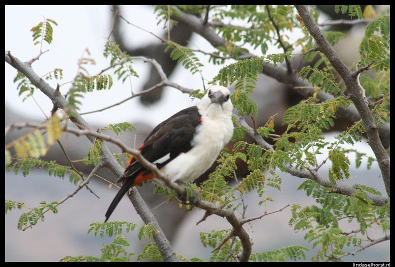 Vandaag de hele dag in de Serengeti rondgereden. Om 8.00u reden we weg bij de lodge, als eerste zagen we een kudde impala’s, goh wat verrassend, haha. We reden rustig door en ineens spotte Ton een leeuw, hup nu kwam de jeep van Julio weer achteruit gereden. Weer zagen we alleen zijn manen en heel even de leeuwin die 2x heen en weer liep en toen weer ging liggen. We waren nu wel iets dichterbij dan gister, maar het punt zit m in het hoge gras waardoor we niet veel zien, maar wel goed gespot! Genietend van de eindeloze vlaktes zagen we een hoop gieren in de lucht en in de bomen, wachtend op een lekker maaltje. In de verte zagen we een kudde wildebeesten (gnoes). We kwamen steeds dichterbij en ineens zagen we er honderden en misschien wel duizenden de weg oversteken en een lang lint vormen. We zaten midden in de migratie, geweldig!! Knorrend en rennend kwamen ze langs ons heen, op weg naar het vertrekpunt waar vandaan ze massaal naar de Masai Mara zullen trekken. Super dat we dit zien, echt mooi! Ondertussen zagen we al een aantal jeeps zich in de verte verzamelen, er zal wel een predator gesignaleerd zijn. En jawel, 2 leeuwinnen in een boom, luierend op een tak! Wat geweldig mooi zeg, boomklimmende leeuwen. We hebben een tijdje staan kijken maar konden niet dichterbij komen, de andere jeep stond er beter voor en Keith heeft een paar foto’s voor me gemaakt, thank you! Even verderop zagen we een aantal hippo’s in een poeltje liggen en op de achtergrond een olifant lopen, geinig gezicht. Ook kwamen we een grote kudde olifanten tegen die zich samendrong rondom een boom, met een hoop kleintjes erbij. Zo mooi om dit allemaal van dichtbij te zien. Aan de overkant stonden nog twee mannetjes olifanten te eten. En ons geluk kon niet op, een luipaard in de boom. In zo’n gave boom met allemaal kronkelende takken lag ook dit luipaard heerlijk te luieren en konden wij hem van een flinke afstand bewonderen, echt een supermooi beest. Een tijdje later zagen we weer een rijtje jeeps staan, ze hadden een cheeta gespot. Wat een geluk hebben we toch, we zagen hem lopen door het hoge struikgewas en zagen hem verdwijnen onder een boom waarna we hem niet meer zagen. Vol enthousiasme reden we naar de lunchplek waar we omringd werden door klipdassen en vogels. We moesten echt af en toe onze benen omhoog doen, want ze walsten gewoon door. Ook zagen we hier onze enige mongoose van deze reis. Samen met Ton nog de walking trail gelopen en van een mooi uitzicht genoten. We vertrokken weer en zagen een aantal topi’s. Bij een andere poel vele hippo’s in het water en in een boompje vlakbij twee mooi gekleurde lovebirds. Bij een andere poel zagen we twee krokodillen aan komen zwemmen, ze waren aan het paren, geweldig! Echt genieten zo langs de waterpoel. Later zagen we ook nog wat etende giraffen en zebra’s, ze zijn beiden erg mooi, net of ze gebodypaint zijn. We kwamen weer op de vlaktes terecht waar we de bekende rotsblokken weer in het vizier kregen. Bij elke rots speurden we naar leeuwen. En jawel, bij de derde rots was het raak. Bovenop een leeuwin die wegdook toen wij stil gingen staan. We hadden het idee dat er bovenop nog veel meer waren dan wij konden zien en we besloten nog even te wachten. En ja, daar kwam kleine Simba naar beneden en ging ons vanaf een richel zitten bekijken! Gaaf hoor, echt Simba op Pride Rock uit de Lion King. Met een flink gangetje reden we rond 15.30u terug naar de lodge. Het was erg warm geworden en er zaten veel vliegen in de auto. Onderweg zagen we veel blauwe doeken hangen, welke zijn opgehangen om de Tsee tsee vlieg te vangen welke de beruchte slaapziekte overbrengt. We kwamen nog een etende giraf, een buffel en een dikdik tegen, waarna we om 16.00u terug bij de logde waren. We hebben snel een duik genomen in het koude zwembad, maar het was goed om alle stof eraf te spoelen. Toen nog even van de zon genoten om om 18.00u na zonsondergang werd het toch echt te koud en vertrokken we richting warme douche. Vanavond hadden we geen buffet, maar een menu. We hebben 5 gangen gegeten binnen 5 kwartier, dat is toch ook wat he. Maar het was wel erg lekker. Nog koffie gedronken in de bar en toen vroeg naar bed, speuren is vermoeiend!