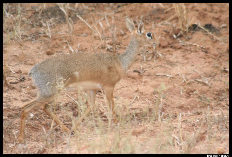 Lekker geslapen en ontbeten. Het is nog steeds erg koud en we stapten snel de jeeps in. De weg de krater uit was een stuk(je) beter dan de heenweg, gelukkig. Eenmaal uit het park werd het een asfaltweg en kregen we een mooi uitzicht over de nog steeds groene omgeving. Veel dorpjes en Masai lopend met hun koeien of geiten langs de weg. Rond het middaguur reden we Tarangire NP binnen en zagen we een mooi park met heel veel baobabbomen en een grote troep olifanten met kleintjes etend langs de weg. We zagen veel kapot gevreten bomen, zowel door olifanten als door termieten. We stopten bij een view-point waar we mooi uitzicht hadden over de vallei met een drooggevallen rivier. In de lunch kregen we een lunch en maakten we ons klaar om te zwemmen, maar helaas de zon verdween en het werd te koud. Toen hebben we de Amerikanen leren hartenjagen, was leuk. Om 16.00u vertrokken we voor onze laatste gamedrive. We zagen twee etende giraffen, gave beesten zijn dat toch. Toen een groepje olifanten wat net de weg overgestoken was, helemaal onder de rode stof. Even verderop weer een grote troep olifanten, ook weer met kleintjes erbij. Een moeder met een kleintje stond op de weg en schudde een paar keer met haar kop, gooide met zand en tetterde naar ons. Ook rende ze nog een paar stappen in onze richting, ohoh, wegwezen! Klein stukje achteruit gereden en weer staan kijken, ze bleef ons continu boos aankijken en liep de bosjes in. Daar tetterde ze nog een keer en hield ze ons in de gaten. Toen staken ze allemaal de weg over, wel 30 olifanten zagen we passeren. We reden een stukje verder en vlak achter de andere jeep was er weer een olifant boos geworden en schudde weer met de kop en nu tegen de achterste jeep, ze schrokken zich wezenloos, want de olifant was erg dichtbij en erg boos. Nu stonden wij voor ze en konden zij geen kant op, maar de chauffeurs hielden alles in de gaten. Wat een spektakel, echt geweldig! Toen alle olifanten de weg overgestoken waren, reden we weer een stukje verder en kwamen we weer een groep olifanten tegen. Ik maakte een foto waarbij ik de flits gebruikte en kreeg alweer getetter te horen en een boze blik, hmm ze zijn wel wat gepikeerd vandaag! Ook deze olifanten staken de weg over en hielden ons met boze blikken scherp in de gaten, brr wel heel gaaf maar ook een beetje eng was het wel. Later zagen we nog een paar dikdiks en een olifant in de verte. Langs de rivieroever zagen we nog twee leeuwinnen liggen, wat wel bijzonder was dat we die hier zagen; er zijn hier zoveel olifanten dat er bijna geen leeuwen zijn. Een schitterende sunset gezien, eindelijk! In de verte zagen we nog een groep olifanten en weer de leeuwinnen die lekker lagen te rollen in het zand. Terug in het hotel wat gedronken en elkaars foto’s bekeken, erg leuk om te zien hoe die jongens de ‘aanval’ van de olifant gezien hebben! Keith had een hele gave foto van de olifant op 3 meter afstand. Ook de foto’s uit Kenia heb ik nog gezien, daar hebben ze ook echt gave dingen beleefd, cheeta’s met een kill en een groepje neushoorns van heel dichtbij. De douche was lekker warm, het eten goed. In de bar hebben we gedronken, gekaart en gelachen. Het was een gezellige avond, tot in de late uurtjes…