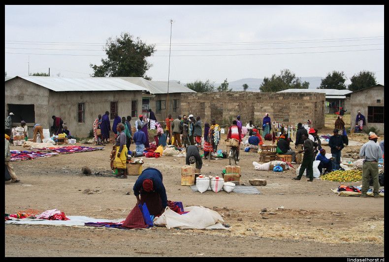 Vanmorgen om 8.00u zaten we weer in de jeep, op naar de laatste game drive in de Serengeti. De eerste tijd scheurden we overal langs totdat we een riviertje over moesten steken. Daar deden we drie keer over en aan de overkant van het meer zagen we links 4 leeuwinnen en rechts een heleboel wildebeesten. Helaas was er van beide kanten geen beweging en tuften wij verder. Nu zagen we nog meer wildebeesten bij elkaar en allemaal op weg naar de migratie, echt een overweldigend gezicht!! We hebben een tijdje tussen de duizenden wildebeesten rondgereden toen we weer om moesten keren naar het riviertje. Intussen waren de wildebeesten overgestoken en de leeuwinnen niet meer te zien. Wel zagen we een hoop gieren en een eenzame hyena die flink z’n best deed om alle gieren weg ta jagen, wat hem niet lukte in z’n eentje, het waren er teveel. Bij zo’n grote rots zagen we 2 jeeps staan, dat beloofde goed nieuws. En jawel, wat een geluk, 1 leeuw en 4 leeuwinnen waarvan er 1 zelfs zwanger was! Ze lagen (wederom) rustig te liggen, af en toe ging er een pootje of een kop omhoog maar dat was dan ook wel waar het bij bleef. Toen door naar de uitgang van het NP welke meteen over ging in het Ngorongoro NP. Bij de ingang konden we weer van een opperbest toilet genieten. Maar gelukkig ook hier een prachtig uitzicht over de vlaktes. Eenmaal terug bij de jeeps bleek er van de derde jeep de ventilator te zijn gesneuveld en moesten we die jeep achterlaten, de passagiers en de tassen werden over onze 2 jeeps. Na een tijdje door ‘skelettenland’ te hebben gereden, stopten we bij 1 duin ergens in de middle of nowhere. Weer pech, maar nu met de jeep van Julio, een lekke band. We zijn het duin opgeklommen, gezellig gekletst en een paar leuke foto’s gemaakt. Toen weer op weg en nog geen 20minuten later, weer de jeeps aan de kant, weer een lekke band! Dus weer uit de jeeps, kletsen in de zon, nieuwe band eronder, maar deze was ook al zacht, nou ja, op hoop van zegen. Zodra we hier uitstapten kwam er een Masai vrouw op ons af met 2 ezels, ze vroeg geld in ruil voor foto’s. Het land waar we ons nu bevinden is de ‘gorge’ waar de eerste mens gevonden (homo Sapiens) is en wordt alleen bewoond door de Masai, het is te dor en te droog om goed bewoond te kunnen worden. We reden na het verwisselen van de band door naar een uitkijkpunt over de vallei en hadden ook hier weer een schitterend uitzicht en een hoop lol met de amerikanen! De chauffeurs waren weer met de auto’s bezig en na een uurtje zat alles weer vast en konden we weer op pad. Nu gingen we door het lege landschap op weg naar een Masai-dorp. We werden verwelkomt met dans en zang en gingen in groepjes van 3 een hutje van binnen bekijken. Interessant hoor, we kregen uitleg over het leven van de Masai. Daarna nog een rondleiding door het dorpje en langs de plaatselijke school waar ze de ‘Jambo-song’ voor ons zongen. Toen ik begon te tellen in het engels, maakten zij het af, echt goed! Inmiddels had ik een klein ventje aan de hand wat me niet meer los liet, hoewel z’n moeder ons overal volgde. Nog steeds met het jochie aan de hand liepen we terug naar het dorp, terug naar de jeep en de volgende rit vol stof. Als de moeder het jochie niet had gepakt, was ie zo met ons mee gelopen. 20 minuten later kwamen we de chauffeur tegen die we eerder deze dag hadden achtergelaten met een kapotte ventilator. Hij stond nu weer stil met de nieuwe ventilator in zijn handen, dus wij weer stoppen, de chauffeurs haalden alle tools weer tevoorschijn en gingen weer al schreeuwend tegen elkaar aan de bak om de wagen te fiksen. Na 40minuten konden we weer op weg, want hij deed het weer. Hij wilde nog geen passagiers meenemen, die mochten in onze jeeps blijven. Nou, toen was de jeep van Julio weer aan de beurt, er was een slangetje los geschoten. We gaan lekker vandaag! Nieuw slangetje erin, weer wat geklus en gedoe en we konden weer op pad. Alleen onze jeep rijdt nog zonder problemen, als je het raam wat er steeds uitvalt niet mee rekent dan, haha. We vervolgden een stoffige weg en Mudi gaf vol gas omhoog en toen werd ik wel wat ziek, maar gelukkig was de afleiding van de prachtige uitzichten daar. In het hotel een koude handdoek, een drankje en de sleutel van een immens grote kamer met glazen serre met uitzicht op… een berg gras! Haha, geweldig! Lekker wat gedronken in de bar, koud gedoucht, alle apparatuur weer opgeladen en richting het diner. Goed buffet en toen weer naar de bar met de Amerikaanse jongens. We hebben veel gekletst en gelachen om ons belachelijke engels en een potje gekaart. Toen de bar dichtging hebben we op hun kamer ze leren meppen, haha! Toen nog een spelletje bullshit gespeeld waarbij ik wonderbaarlijk won zonder precies te weten hoe ik dat gedaan had, was het tijd om te slapen. Morgen naar de krater!