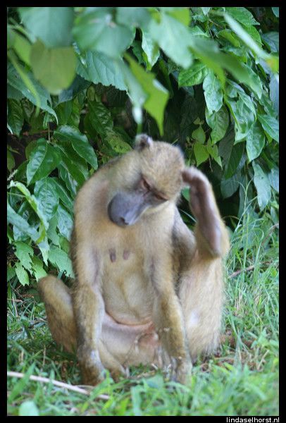Op tijd ontbeten en stipt om 8.00u reden we richting Lake Manyara. Bij de ingang van het park werden we opgewacht door tientallen baboons. Eenmaal in het park werden we omringd door wel 1000 kleuren groen en vele vele baboons! Wat een ontzettend mooi en vooral groen park, het lijkt het tropische regenwoud van Ecuador wel. We zagen 2 mannetjes olifanten van een behoorlijke afstand en wederom baboons, vele soorten vogels, warthogs en impala’s. Na zo’n 2,5uur in het park gereden te hebben, reden we richting een picnic-place voor een sanitaire stop, maar vlak ervoor zagen we het schuwe luipaard hoog in een boom zitten. Wow, wat gaaf! Hij ging nog een paar keer verzitten en leek zich niet echt aan ons te storen, nu stonden we ook echt wel een eindje weg maar toch. Bij de stop een korte plaspauze en weer door. We kwamen weer langs het luipaard en hij lag nog steeds relaxt om zich heen te kijken. We kwamen langs de hippo-pool waar we een hoop ogen en oren boven het water zagen uitsteken en dat tussen allerlei soorten vogels. Om 12.00u waren we weer terug voor de lunch en om 13.00u vertrokken we naar de Serengeti. Onderweg zijn we alle kanten opgestuiterd door het slechte wegdek, echt ongelofelijk. Maar we hebben mooie dingen gezien; impala’s, warthogs, struisvogels, zebra’s en toen we binnen de grenzen van het park waren, zagen we nog een aantal gieren genieten van een kill. Dat was een geinig gezicht, allemaal stonden ze te wachten tot de grote baas uitgegeten was en toen de baas met veel vertoon wegliep, stormde de groep en op af en vocht om de laatste stukjes vlies, huid en haar, geweldig! Inmiddels waren wij al verder gereden tot we werden teruggeroepen door de andere jeep van Julio. Ze hadden een leeuw gespot. Wij als een gek weer terug en het enige wat we zagen waren een heleboel manen, meer liet hij niet zien, jammer! Het gras was te hoog en hij lag te ver weg voor een mooie blik op z’n kop en lijf. Maar even later zagen we twee leeuwinnen lekker luieren in de zon, bovenop een groot rotsblok. Verder nog vele impala’s en wildebeesten gezien en nog een paar warthogs. En nog een gevlekte hyena en een black backed jackal, maar we konden niet te lang blijven staan, want we moesten voor het donker binnen zijn. Toen kwamen we een grote groep olifanten tegen, wow! En zo dichtbij! Opeens zeker te dichtbij want er begon er een te tetteren en met zijn kop te schudden, wegwezen! Toen ze voorbij waren gingen we volgas naar de lodge, waar we prachtig uitkeken over de eindeloze vlaktes. Het buffet smaakte weer goed, helaas eten we nergens plaatslijk wild. De vergunning daarvoor schijnt erg duur te zijn, helaas. Na het eten werden Ri en ik uitgenodigd door Keith, Cory en Ryan om gezellig wat te drinken in de bar, we hebben leuk gekletst. Zij komen uit St Louis en verhuizen komende maand alledrie naar New York, kijk, daar hebben we wat aan ;-). Om 23.30u liggen we in bed en maken ons klaar voor een full day game drive van morgen in de Serengeti.