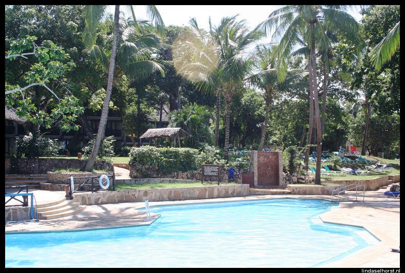 De eerste ochtend kregen we een rondleiding over het complex, langs alle sportvelden, de fitness, de bars en nog veel meer. Wat een grote oppervlakte, daarna lekker naar het zwembad gegaan en heerlijk van de bloedhete zon genoten. Elke tien minuten moesten we even afkoelen in het zwembad. We hebben meegedaan aan waterpolo en na de lunch veranderde het weer en kwam de regen met bakken uit de hemel vallen. Die middag eindelijk eens naar huis kunnen mailen over al onze belevenissen, het is een erg lange mail geworden, maar we konden toch niks anders doen. We hebben de film van vorige week teruggekeken en al onze belevenissen nog eens bekeken, het was een gave week! Verder hebben we de rest van de dagen vooral s morgens regen gehad waarna we rond 10.00u weer naar het zwembad konden om te zweten in die bloedhete zon, hebben Ton en Ri nog lekker in de Indische Oceaan gezwommen en konden zich daarna niet meer op het strand vertonen wegens de vele mannetjes die beweerden dat Ton had gezegd dat hij wat wilde kopen en belaagden iedereen die langs kwam. We hebben 1,5 dag stralend weer gehad en verder regen zonder dat het koud was. Ton en ik hebben nog een bushwalk gedaan wat eigenlijk niets voorstelde, we zagen de huisjes van het personeel, 20 baboons en 1 dikdik, maar goed, het idee was leuk. Zelfs nog een groene momba (slang) gezien, een heel kleintje en hoog in de boom. Het eten was erg goed in het buffetrestaurant en de shows s avonds waren leuk, goed georganiseerd en leuk om naar te kijken. De laatste dag was het weer regen en bewolkt en hebben we bij de koffiebar doorgebracht. We hadden nog de beschikking over onze kamers tot 15.00u dus we konden rustig de tassen inpakken en nog douchen. Om 15.00u werden we opgehaald en naar Mombasa Airport gebracht voor de korte vlucht naar Nairobi. Op Nairobi ontmoetten we Regina weer, zij had het ook leuk gehad op Zanzibar maar ook niet echt mooi weer. De vlucht van Nairobi naar Amsterdam ging met af en toe flinke turbulentie wel als een speer en om 5.35u dinsdagochtend stonden we weer op Nederlandse bodem. Joost kwam ons ophalen en Martine had thuis al koffie gezet, het was goed ze weer de zien. We hebben een geweldig mooie vakantie gehad, eerst genoten van de prachtige natuur, landschappen en alle beesten die we gezien hebben en daarna nog een paar dagen heerlijk uitgerust aan de kust, het was een topvakantie!