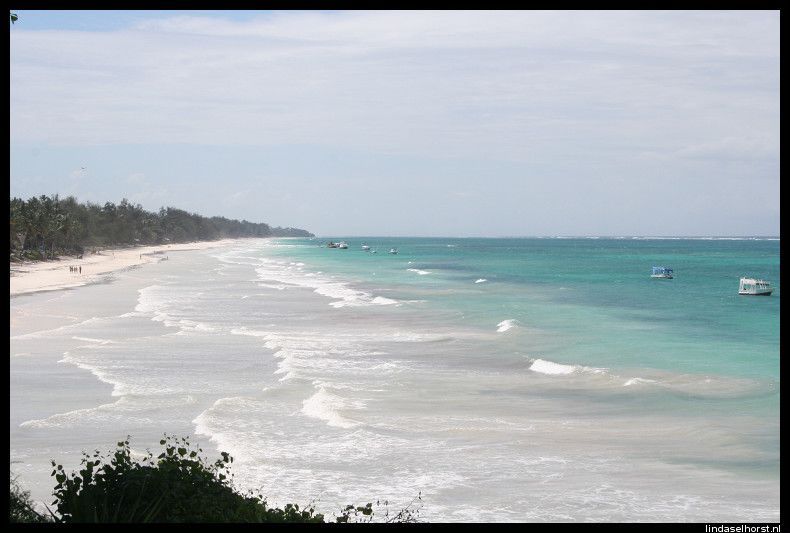 De eerste ochtend kregen we een rondleiding over het complex, langs alle sportvelden, de fitness, de bars en nog veel meer. Wat een grote oppervlakte, daarna lekker naar het zwembad gegaan en heerlijk van de bloedhete zon genoten. Elke tien minuten moesten we even afkoelen in het zwembad. We hebben meegedaan aan waterpolo en na de lunch veranderde het weer en kwam de regen met bakken uit de hemel vallen. Die middag eindelijk eens naar huis kunnen mailen over al onze belevenissen, het is een erg lange mail geworden, maar we konden toch niks anders doen. We hebben de film van vorige week teruggekeken en al onze belevenissen nog eens bekeken, het was een gave week! Verder hebben we de rest van de dagen vooral s morgens regen gehad waarna we rond 10.00u weer naar het zwembad konden om te zweten in die bloedhete zon, hebben Ton en Ri nog lekker in de Indische Oceaan gezwommen en konden zich daarna niet meer op het strand vertonen wegens de vele mannetjes die beweerden dat Ton had gezegd dat hij wat wilde kopen en belaagden iedereen die langs kwam. We hebben 1,5 dag stralend weer gehad en verder regen zonder dat het koud was. Ton en ik hebben nog een bushwalk gedaan wat eigenlijk niets voorstelde, we zagen de huisjes van het personeel, 20 baboons en 1 dikdik, maar goed, het idee was leuk. Zelfs nog een groene momba (slang) gezien, een heel kleintje en hoog in de boom. Het eten was erg goed in het buffetrestaurant en de shows s avonds waren leuk, goed georganiseerd en leuk om naar te kijken. De laatste dag was het weer regen en bewolkt en hebben we bij de koffiebar doorgebracht. We hadden nog de beschikking over onze kamers tot 15.00u dus we konden rustig de tassen inpakken en nog douchen. Om 15.00u werden we opgehaald en naar Mombasa Airport gebracht voor de korte vlucht naar Nairobi. Op Nairobi ontmoetten we Regina weer, zij had het ook leuk gehad op Zanzibar maar ook niet echt mooi weer. De vlucht van Nairobi naar Amsterdam ging met af en toe flinke turbulentie wel als een speer en om 5.35u dinsdagochtend stonden we weer op Nederlandse bodem. Joost kwam ons ophalen en Martine had thuis al koffie gezet, het was goed ze weer de zien. We hebben een geweldig mooie vakantie gehad, eerst genoten van de prachtige natuur, landschappen en alle beesten die we gezien hebben en daarna nog een paar dagen heerlijk uitgerust aan de kust, het was een topvakantie!